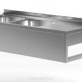 Stół z dwoma zlewami, półką i miejscem na zmywarkę lub lodówkę - komory po prawej stronie