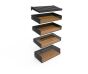 - 4 rzędy półek metalowych z regulowaną wysokością i trzystopniową regulacją pochylenia (blacha lakierowana proszkowo)