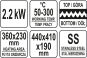 Grill YATO ma wymiary 440x370x190mm i waży 18kg.