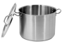 - boczne ściany garnka i pokrywka są wykonane z grubej stali, utrzymującej temperaturę dłużej niż standardowe naczynia ze stali typu 304. W garnkach zastosowano wyjątkowo masywne i nienagrzewające się, solidnie zamocowane uchwyty. Gwarantuje to bezpieczeństwo i wieloletnią trwałość użytkowania