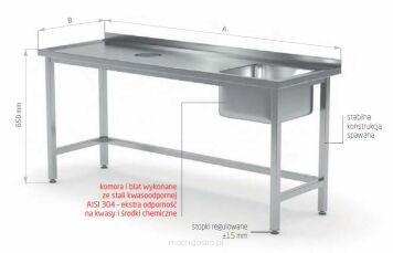 • zlew oraz blat wykonane ze stali nierdzewnej tzw. kwasówki AISI 304